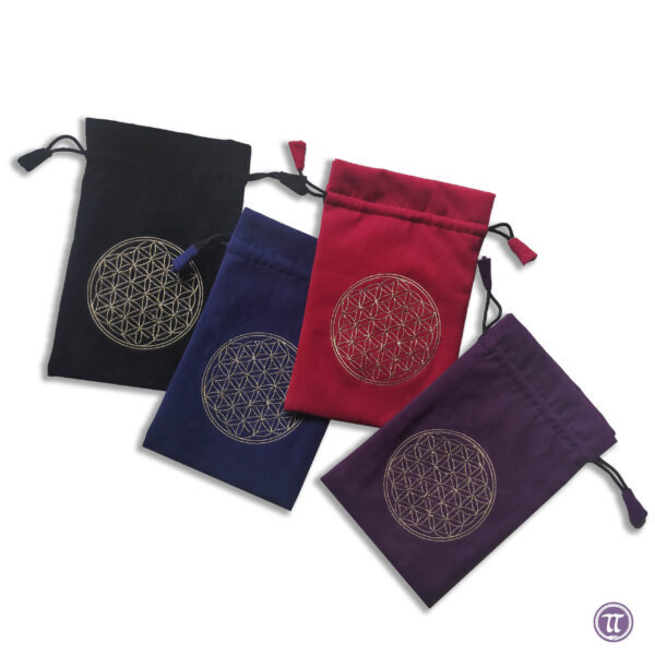 Tersedia dalam berbagai macam warna; merah, hitam, ungu, dan biru dongker dengan motif bordir Flower of Life.